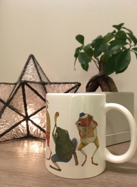 中世の楽器を弾きながら歩くカエルたちがモチーフです。