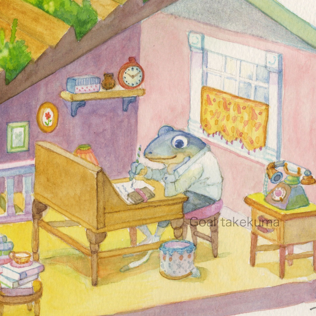 額付き原画 カエルヴィネット 書斎